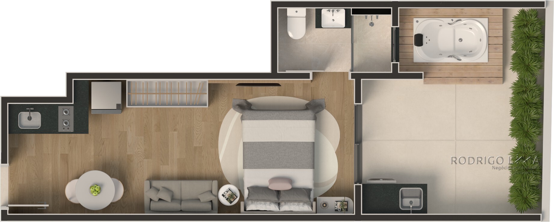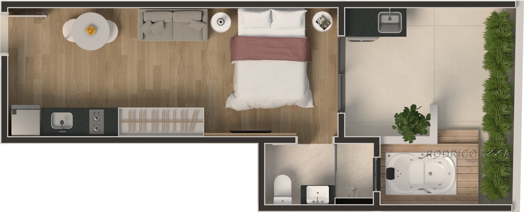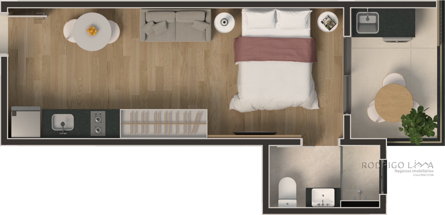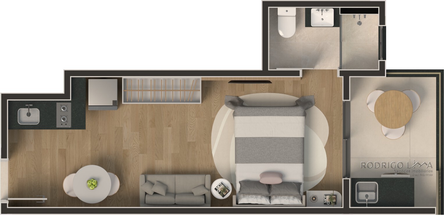 Cada metro quadrado foi planejado para maximizar conforto e rentabilidade. As unidades (Studios, 1 e 2 quartos) são entregues com acabamentos premium que valorizam o imóvel desde a entrega das chaves[cite: 6]:
