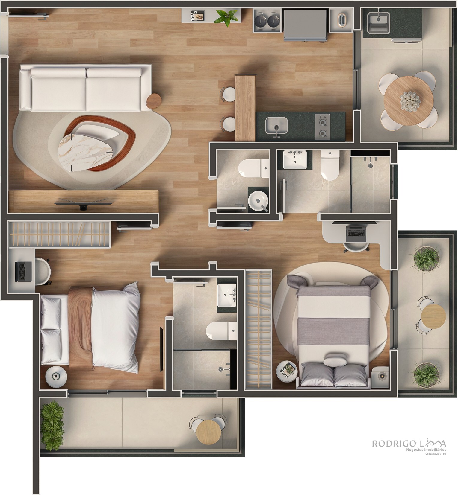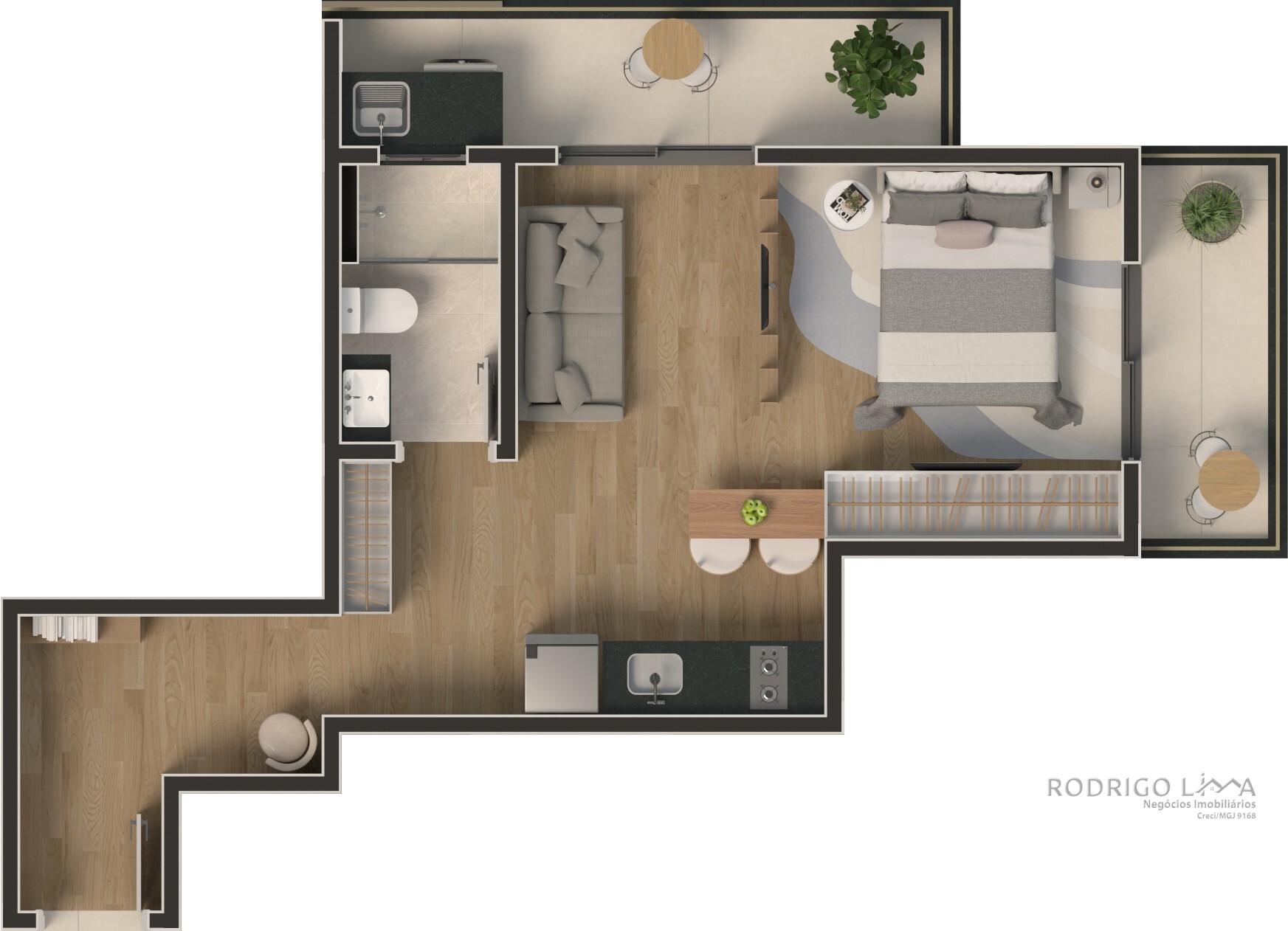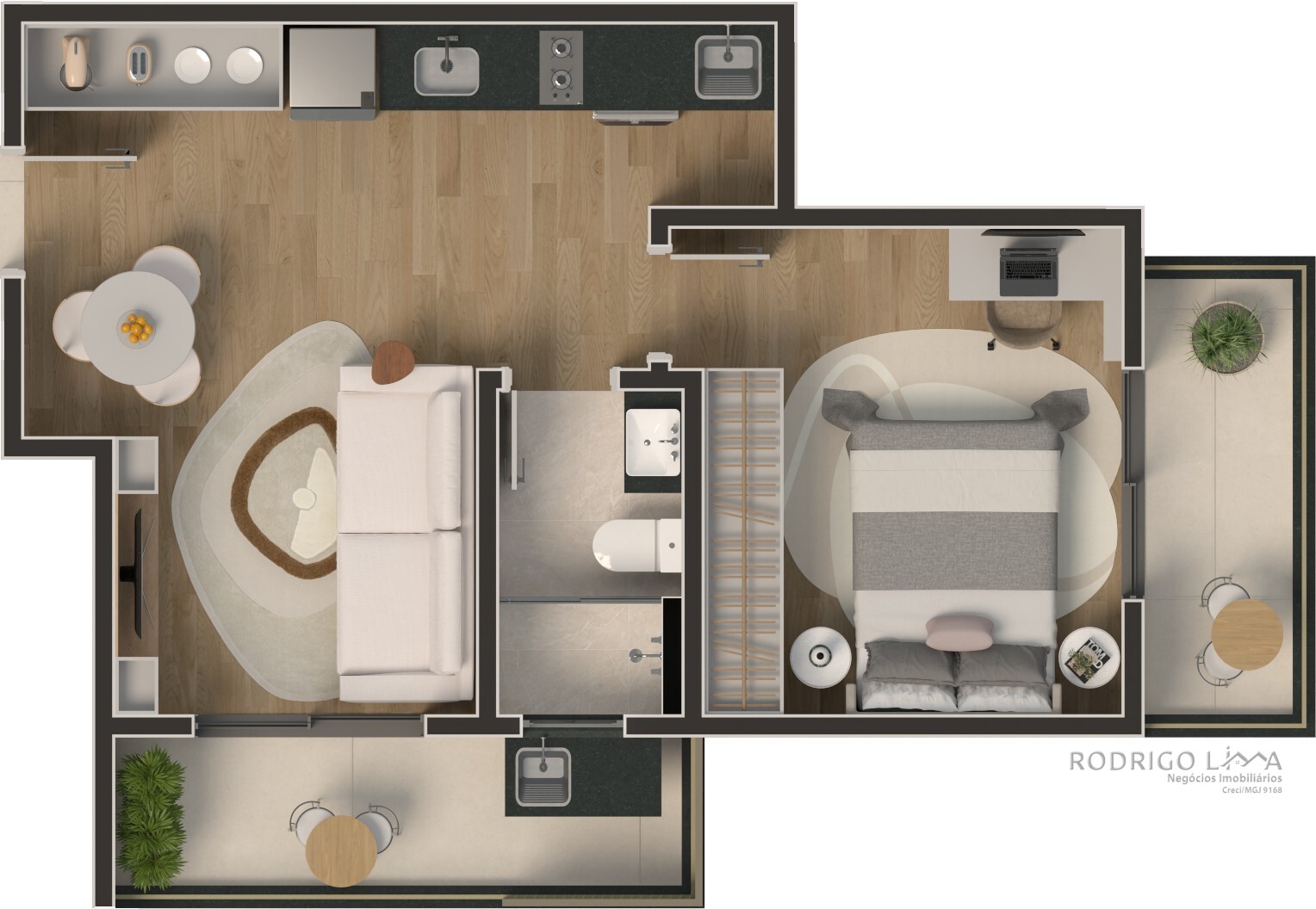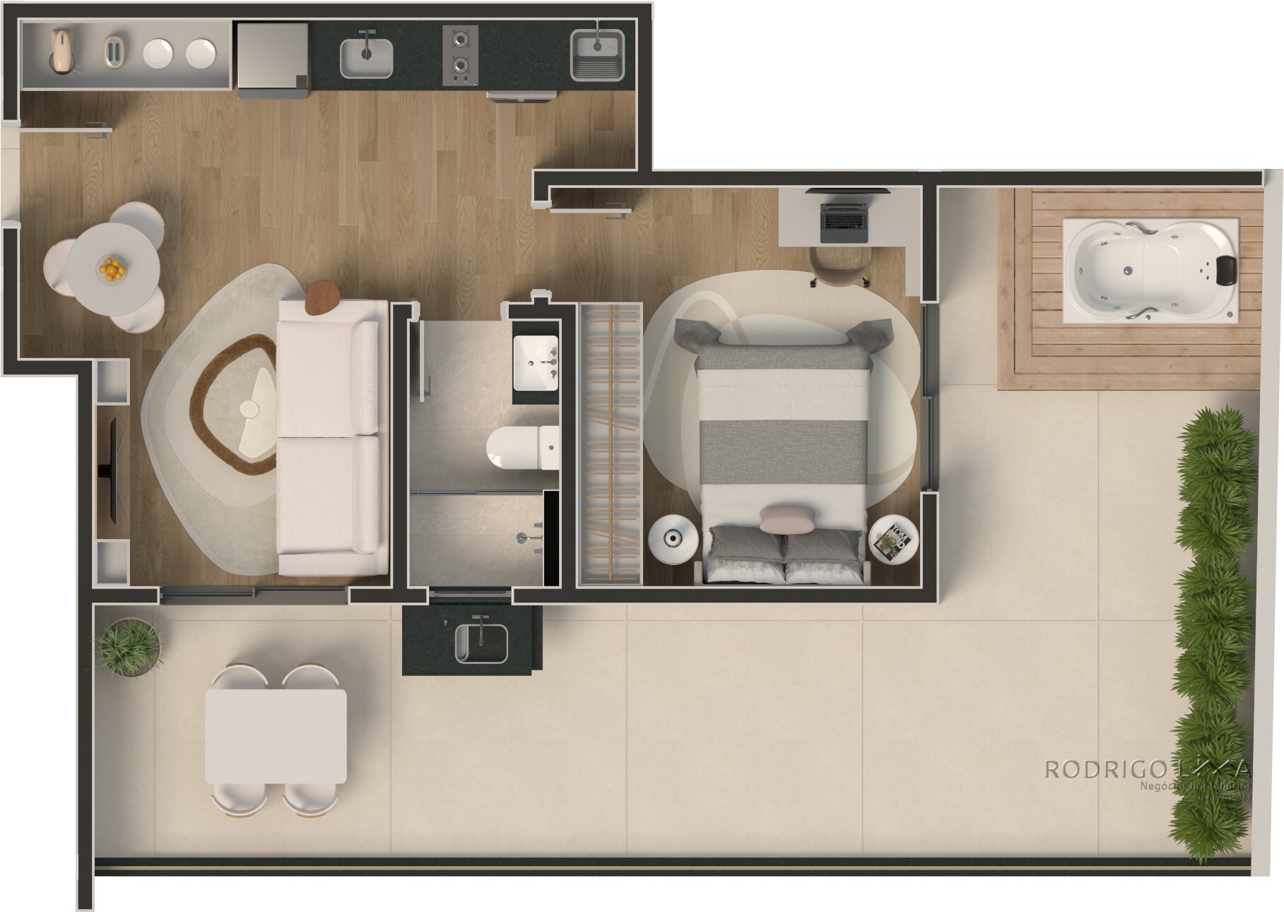 Cada metro quadrado foi planejado para maximizar conforto e rentabilidade. As unidades (Studios, 1 e 2 quartos) são entregues com acabamentos premium que valorizam o imóvel desde a entrega das chaves[cite: 6]: