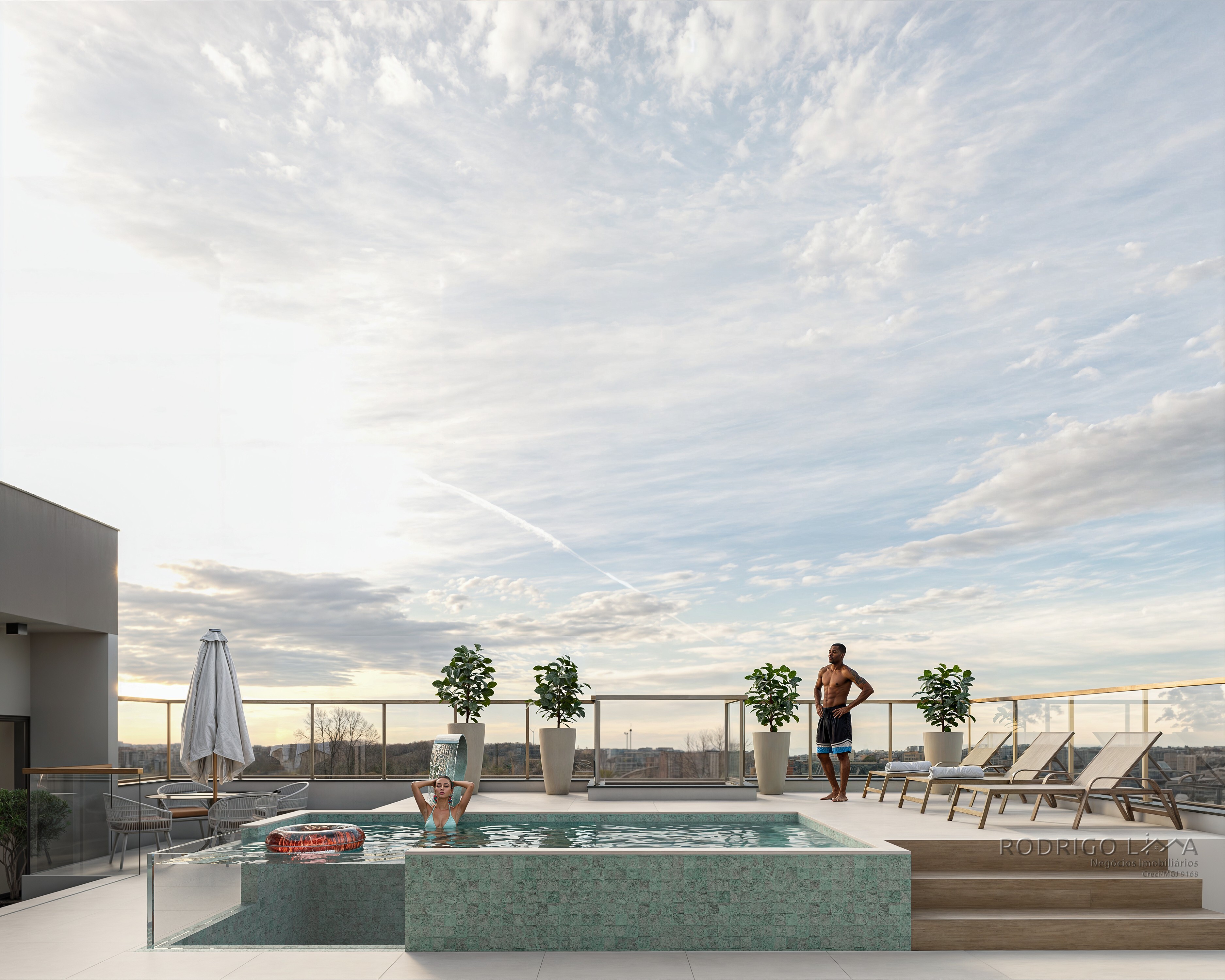 Esqueça o lazer térreo tradicional. No Port Esmeralda, a experiência de vida acontece no topo. O 9º pavimento é inteiramente dedicado ao seu bem-estar, entregue decorado e equipado com o mais alto padrão[cite: 7, 184]: