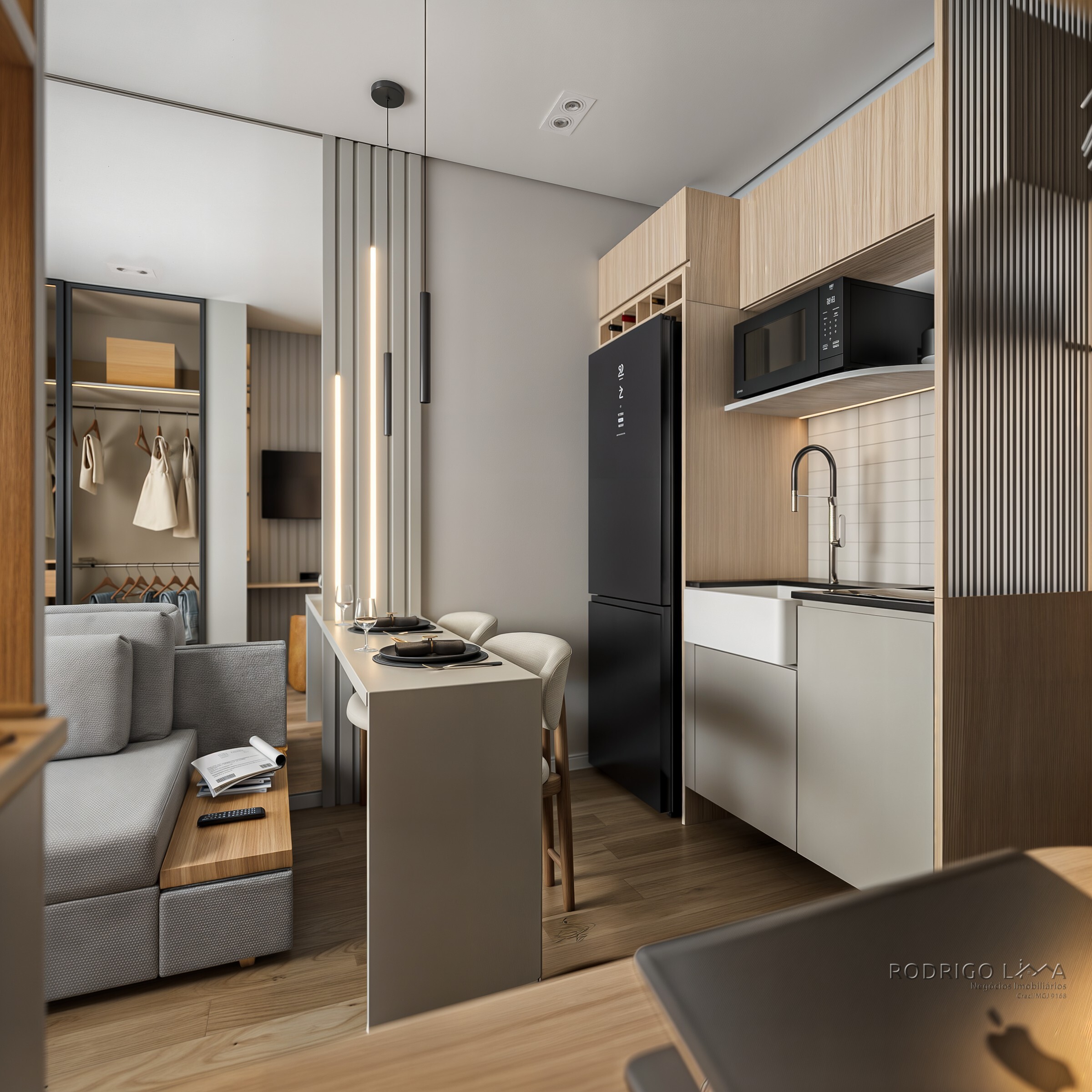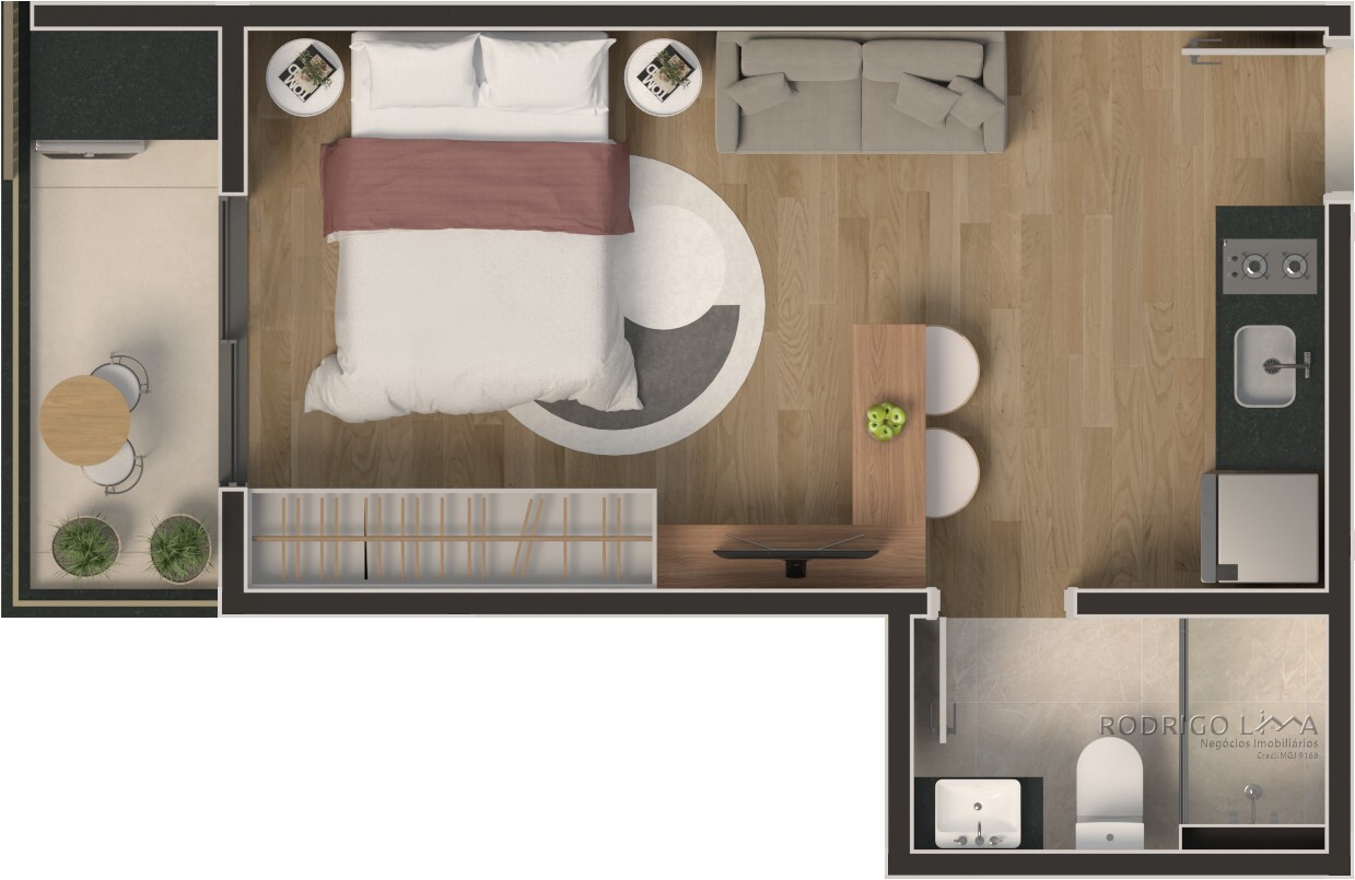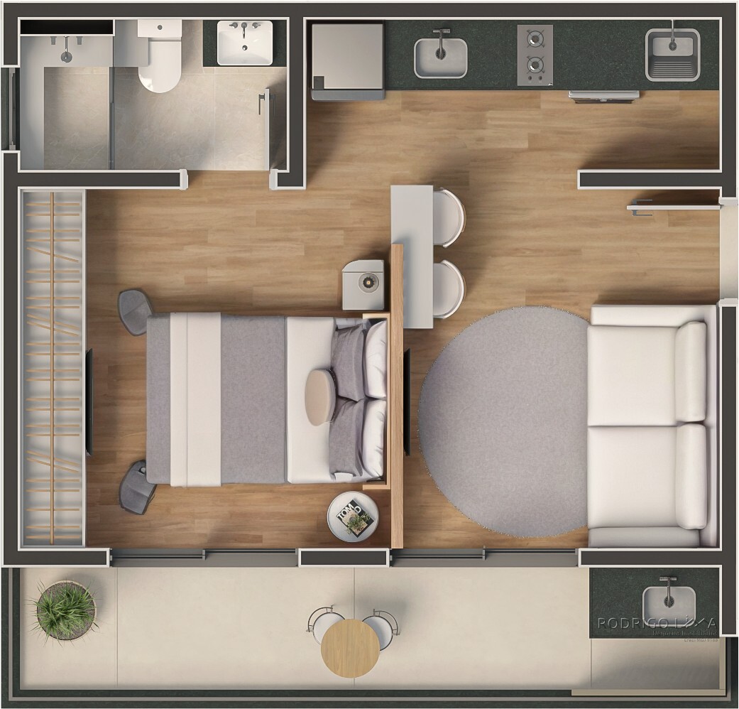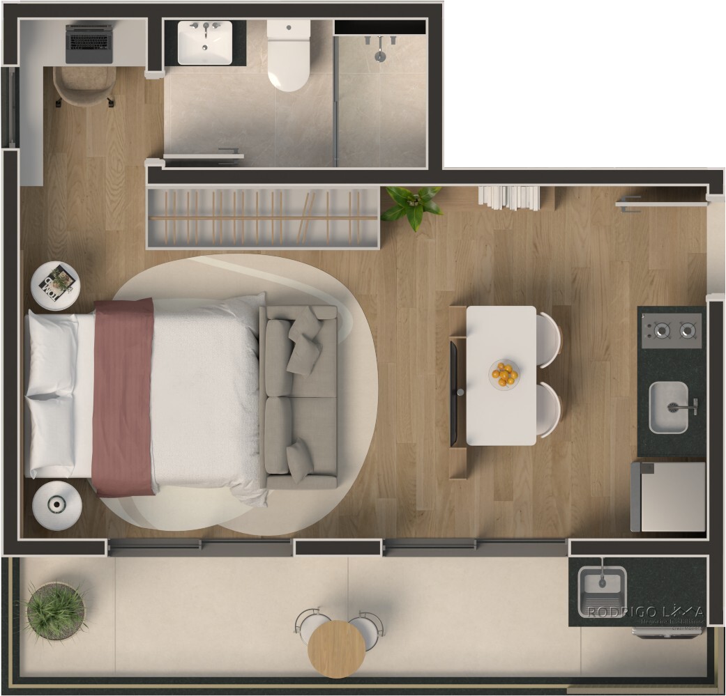 Cada metro quadrado foi planejado para maximizar conforto e rentabilidade. As unidades (Studios, 1 e 2 quartos) são entregues com acabamentos premium que valorizam o imóvel desde a entrega das chaves[cite: 6]: