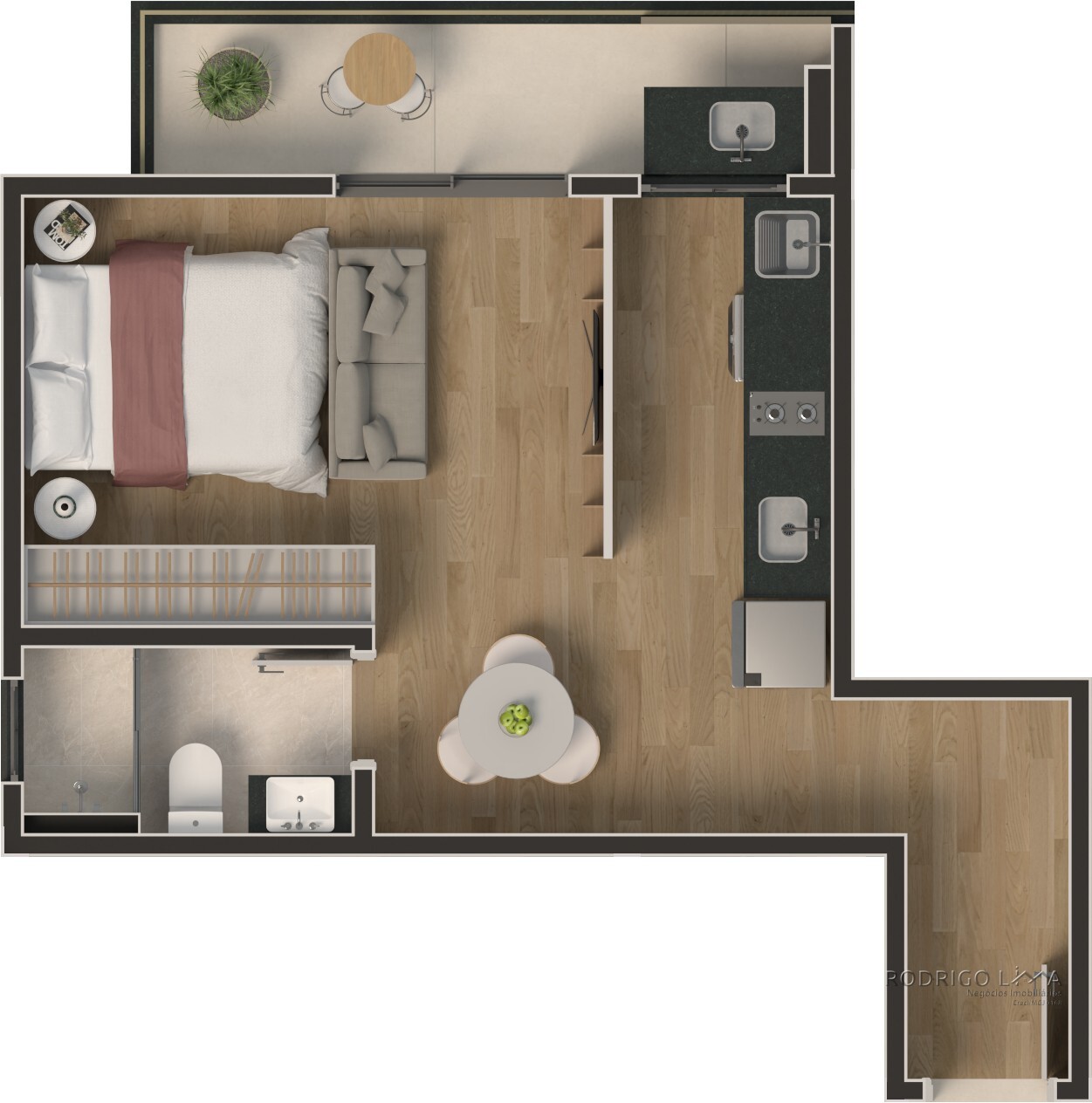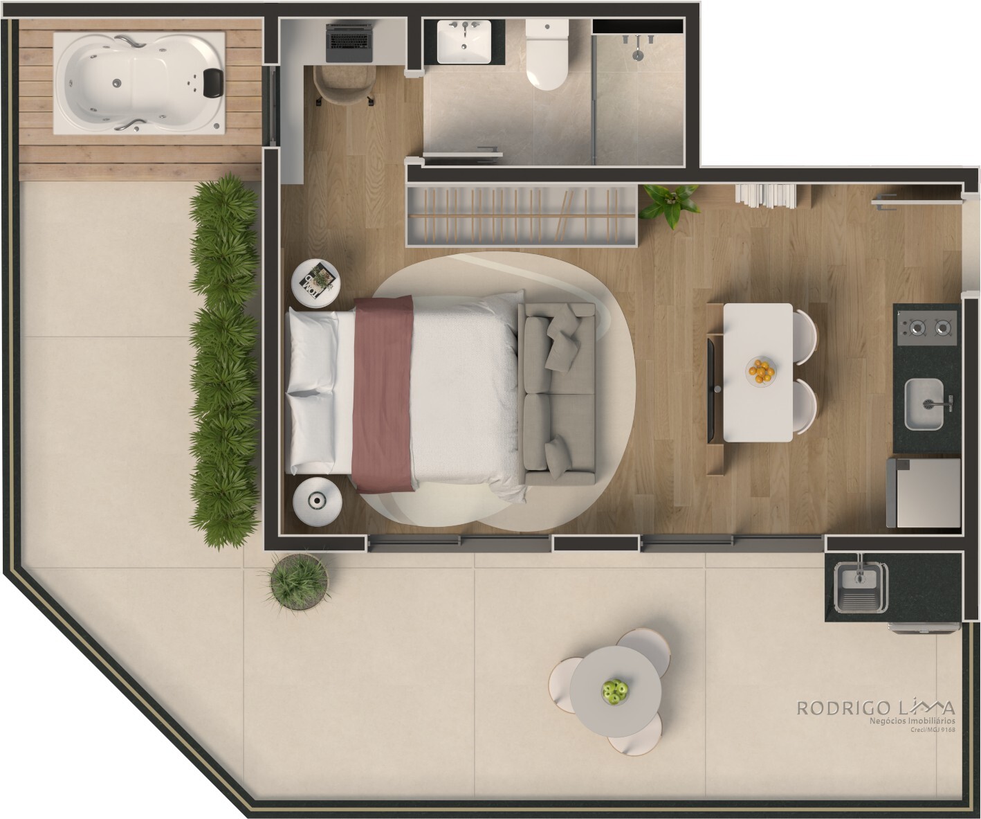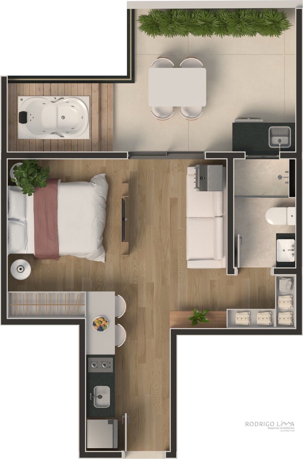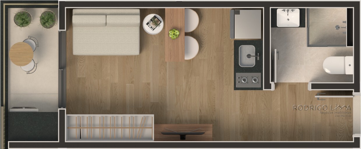 Cada metro quadrado foi planejado para maximizar conforto e rentabilidade. As unidades (Studios, 1 e 2 quartos) são entregues com acabamentos premium que valorizam o imóvel desde a entrega das chaves[cite: 6]: