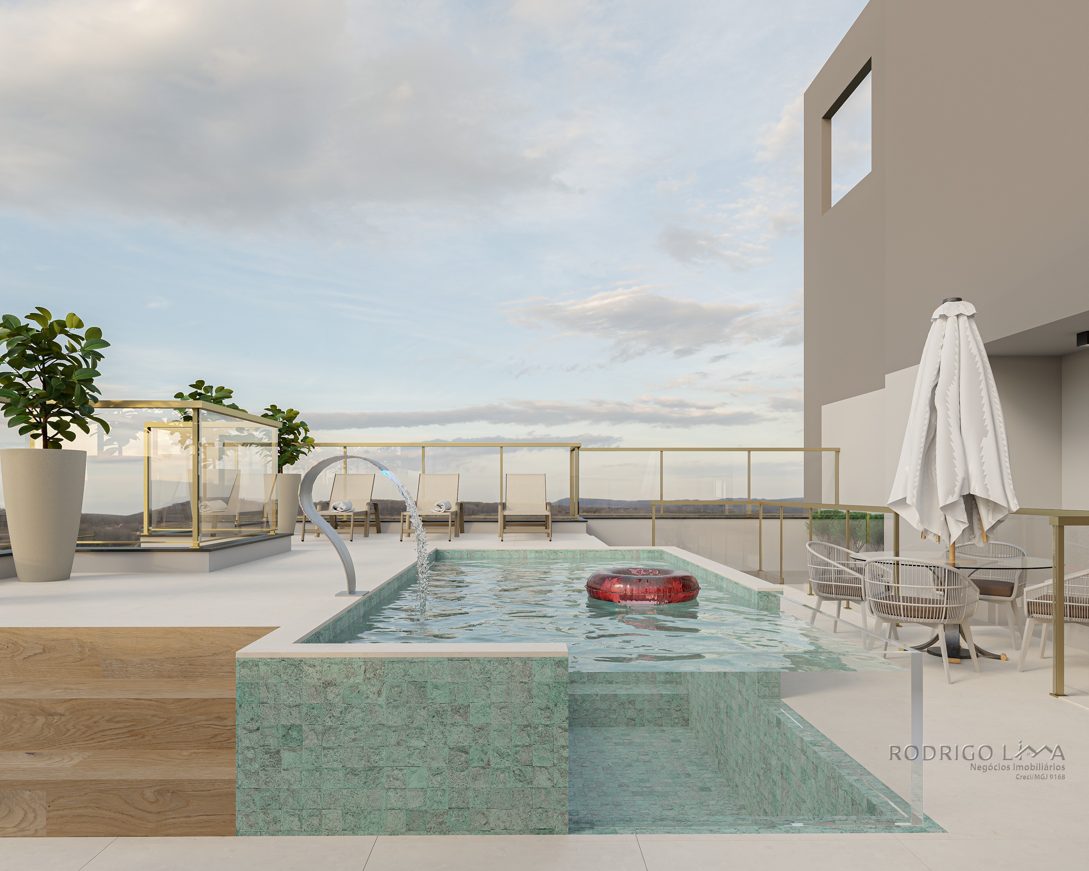 Esqueça o lazer térreo tradicional. No Port Esmeralda, a experiência de vida acontece no topo. O 9º pavimento é inteiramente dedicado ao seu bem-estar, entregue decorado e equipado com o mais alto padrão[cite: 7, 184]: